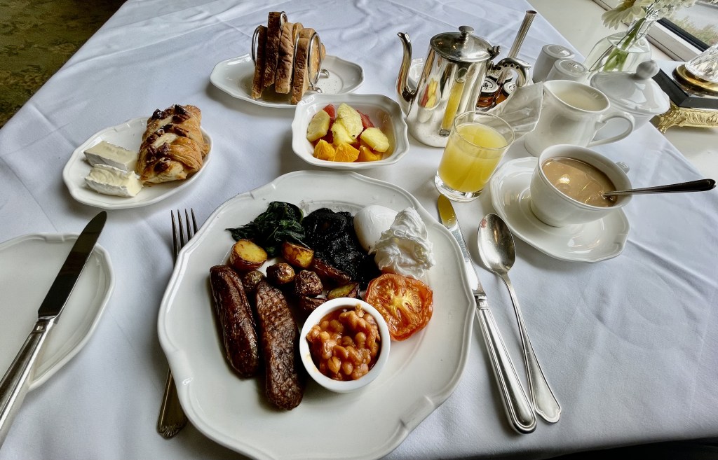 My first stop was Galway where I stayed at the Glenlo Abbey Hotel and Estate. It is a small luxury hotel of the world that I booked through Hyatt using Hyatt points earned with the SUB from the Chase Sapphire Preferred. I paid 25k points a night for a total of 50k points. The advantage of booking a SLH through Hyatt is that you get globalist benefits! Which includes an upgrade and free breakfast! When I say free breakfast I don’t mean some wimpy continental breakfast that you would find at a Holiday Inn Express, where you might be lucky to find a waffle iron. This breakfast spread was incredible, the first day I had eggs benedict florentine (spinach instead of ham), a whole silver pot of decaf coffee, toast, grapefruit and Irish cheese. The second day when I had a bit more time I had the full vegetarian Irish breakfast with fruit, a pastry and more of the delicious coffee!
